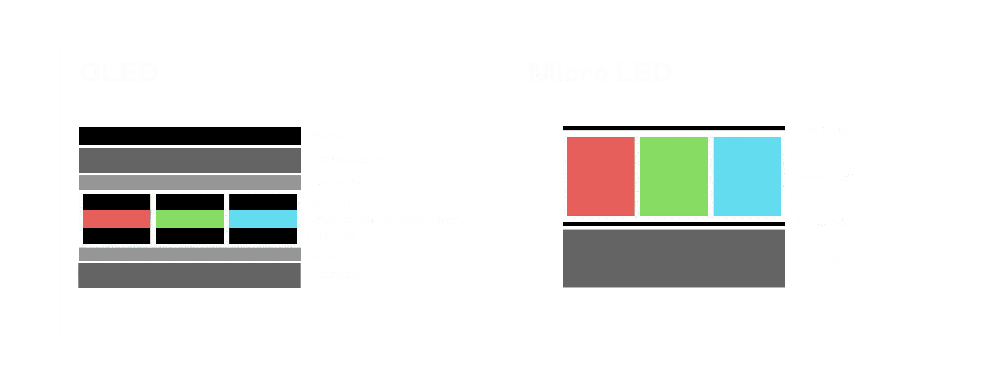 以 LED 做为显示画素,,,,可让 LED 的发光效率发挥到极致,,,从而让显示器具备优异的亮度表现,,不论是在户外或室内,,均具备出众的显示效果。。。。同时,,与使用有机材料的 OLED 相比,,,LED 具备更稳定、、、寿命更长的特性,,,不仅不会有画面烙印问题,,,而且更不容易出现故障、、、、坏点。。。。