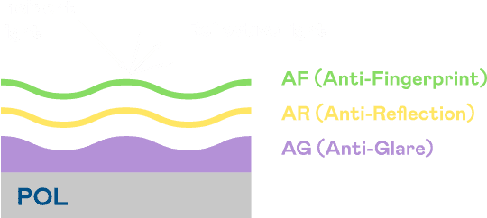 尊时凯龙光电发展出独家的表面处理跟多层镀膜技术,,,让外部光线照射到显示器表面时所产生的反射光大幅降低。。。。